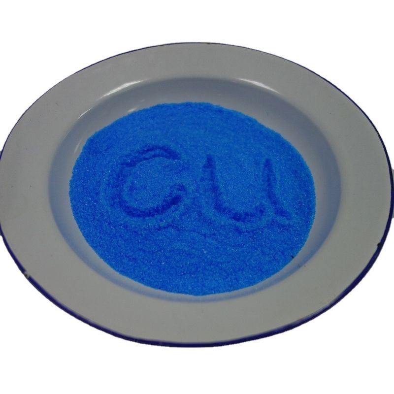 硫酸銅結晶は、分子量 159.61 G/mol、CAS 番号 7758-98-7 の安定した水溶性化合物です。pH は 5.0 (1 M 溶液)、溶解度は 35.2 G/100 ML (20 °C) です。この製品の銅含有量は最低 98%、硫酸塩含有量は最低 25% です。青色の結晶粒状で入手可能です。硫酸銅結晶は、農業用肥料、消毒剤、繊維の染色や印刷における媒染剤、および他の銅化合物の原料として広く使用されています。